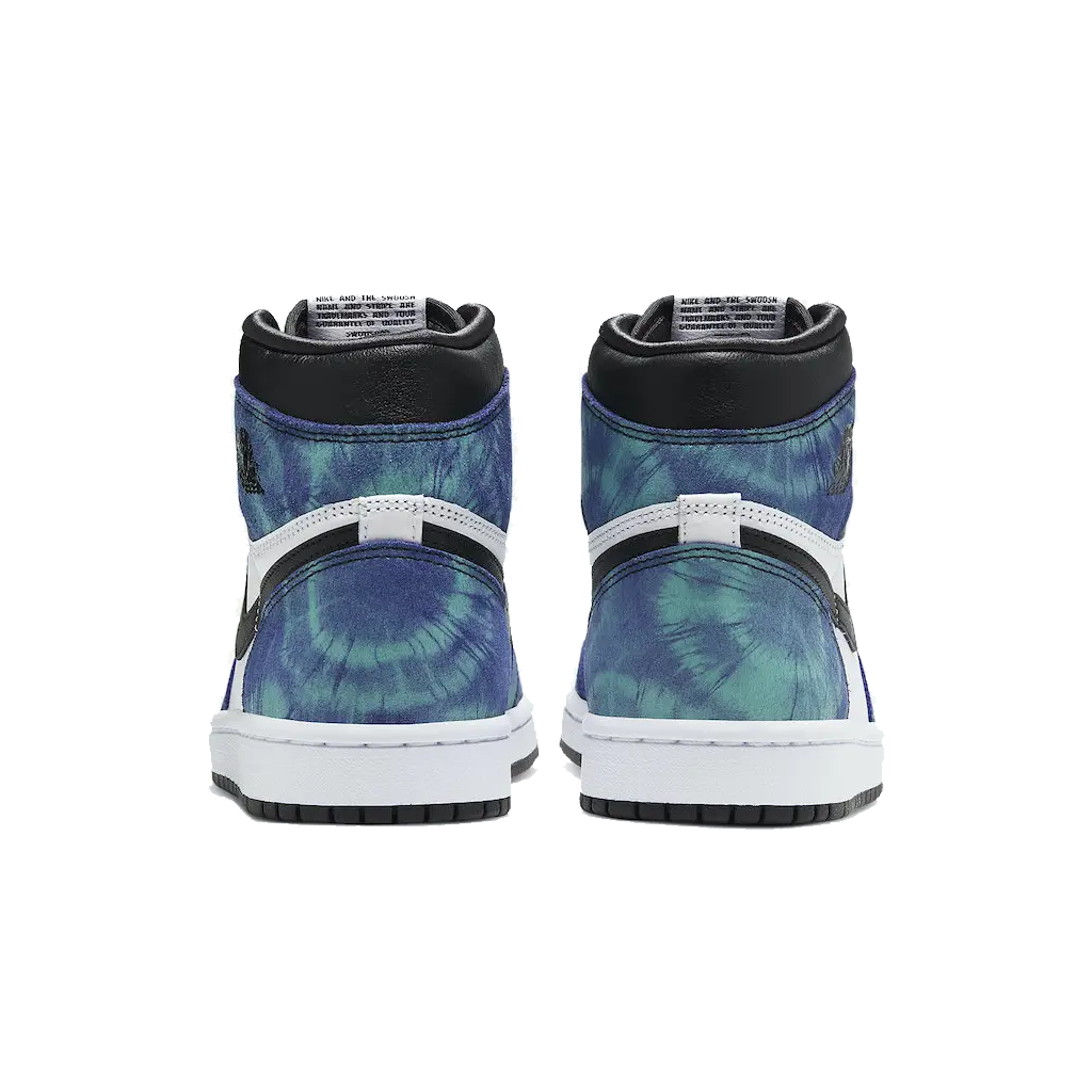 Découvrez la Jordan 1 Retro High Tie Dye en Tunisie : un design unique avec imprimé tie-dye bleu et vert, cuir premium et Swoosh noir. Une édition incontournable !