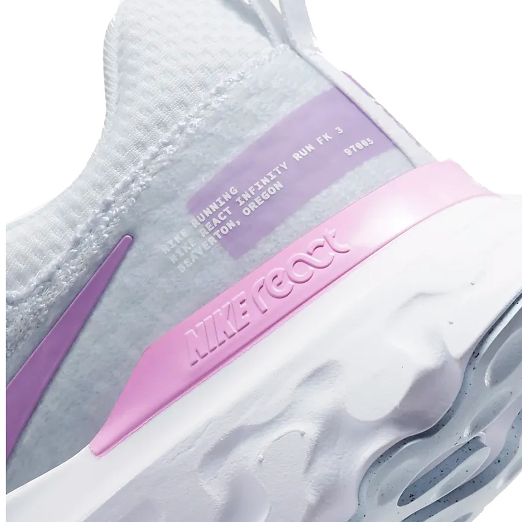 La Nike React Infinity Run Flyknit 3 est conçue pour offrir confort et stabilité aux coureurs, avec des améliorations par rapport aux versions précédentes. Elle est dotée d’une tige en Flyknit qui assure un maintien respirant, tout en étant légère et flexible. La technologie React procure un amorti réactif pour un retour d'énergie optimal, tandis que la semelle intermédiaire plus large offre une meilleure stabilité. Les zones de renfort stratégiques ajoutent de la durabilité, et la semelle extérieure présente des motifs de traction pour une adhérence optimale sur diverses surfaces.