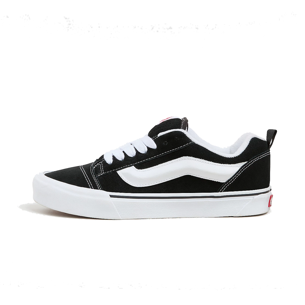 Les Knu Skool sont une réédition d'un modèle emblématique des années 90, une époque où les chaussures de skate étaient plus volumineuses. Elles se distinguent par une tige en daim robuste, une languette large et un col épais autour de la cheville, offrant un style imposant qui se démarque des classiques Old Skool.